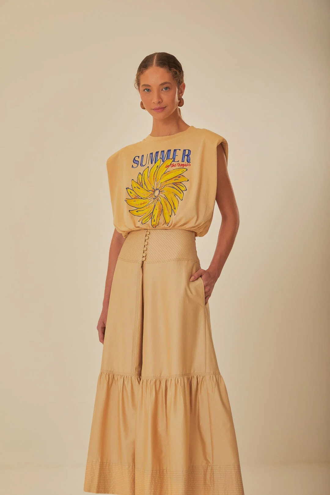 Khaki Topstitching Yoke Organic Cotton Maxi Skirt