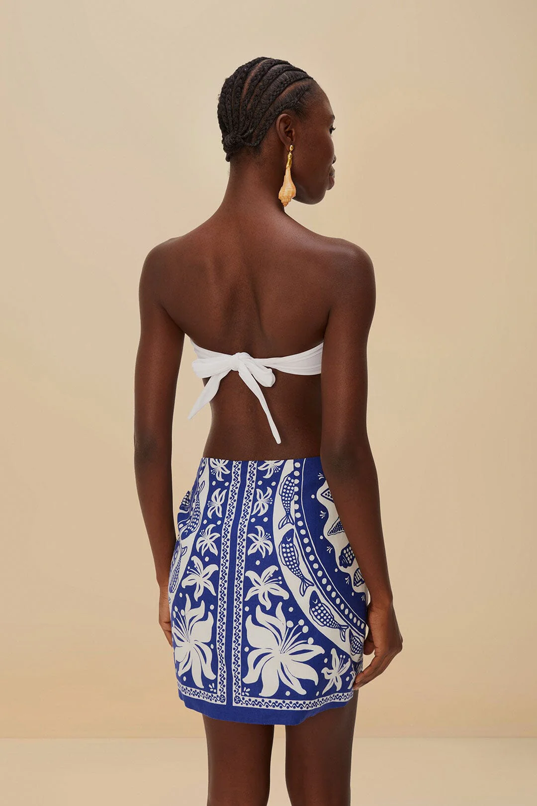 Dive into the carefree spirit of coastal living with the off-white ocean scarf LENZING™ ECOVERO™ Euroflax™ mini skirt by FARM Rio. Crafted from responsible materials, this enchanting piece features a delightful ocean-inspired scarf print. The breezy silhouette gracefully sways with every step, offering a playful touch. Its harmonious blend of colors embodies the calmness of beachside moments, making it an irresistible addition to your wardrobe.