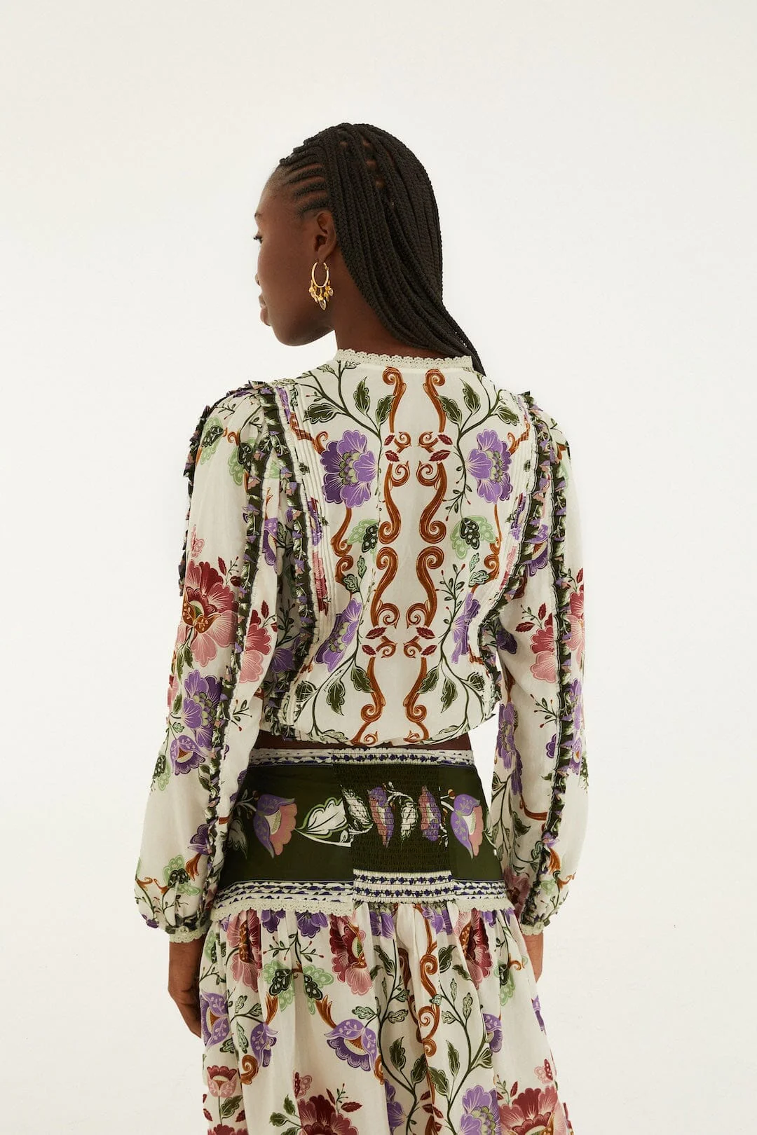 Embrace effortless elegance with the Cream Rococo Flowers Lace Long Sleeve Blouse from FARM Rio. This dreamy top features delicate lace adorned with intricate floral Rococo patterns that dance softly across the fabric. The round neckline frames the collarbone gently, while billowy long sleeves add a romantic, airy silhouette. Its cream hue brings a tender warmth, making it the perfect piece to bring a touch of playful sophistication to your day.